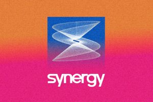 Blue image with two figures, red lines, and red text reading "Between Signal & Spirit"