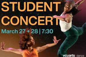 The VCUarts Department of Dance & Choreography is excited to present our Spring 2026 student concert on Friday, March 27th and Saturday, March 28th at 7:30pm respectively. The Spring 2026 student concert will feature works by: Frances Baker, Josie Bennett, Laila Gaddist, Ella Garcia, Ana Levi, Kate Lingo, Luke Moen, Josuah Moise, Alannah O’Hern, Nia Ricks, Ari Stephens, Nassir Tabb, Z. Vonne Walker, Samantha White, and Yterniti Williams.