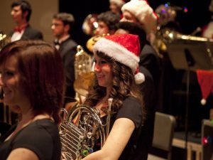 The program continues to follow the original proposal, with a range of holiday classics performed by students from the VCU Jazz Combo; guitar, percussion, and saxophone ensembles; the Commonwealth Singers; and the Symphonic Wind Ensemble. Repertoire will include, among others, “Greensleeves,” “Sleigh Ride,” “Have Yourself a Merry Little Christmas,” the traditional Spanish carol “El Noi de la Marre,” and an audience singalong to “It’s Christmas.”