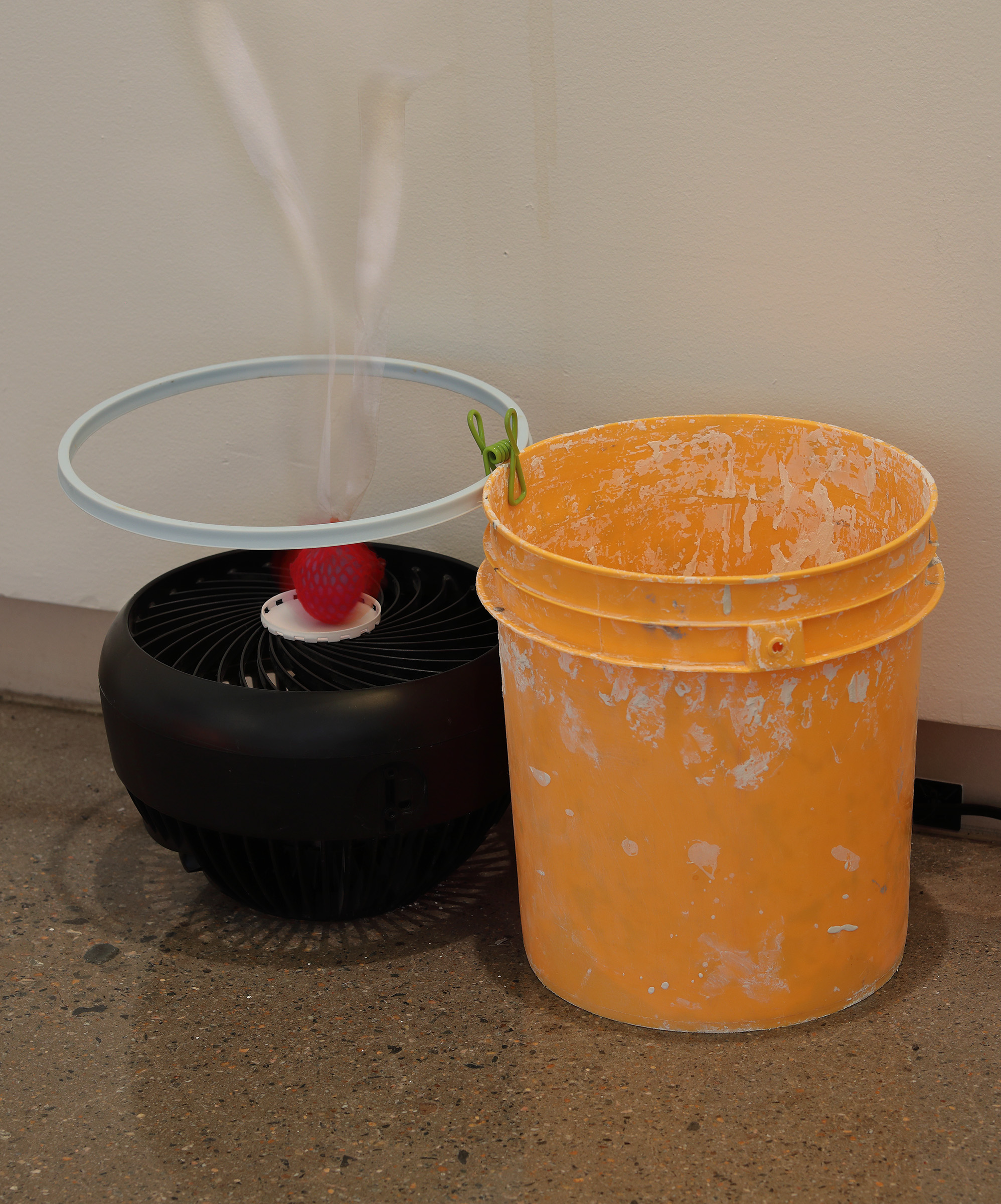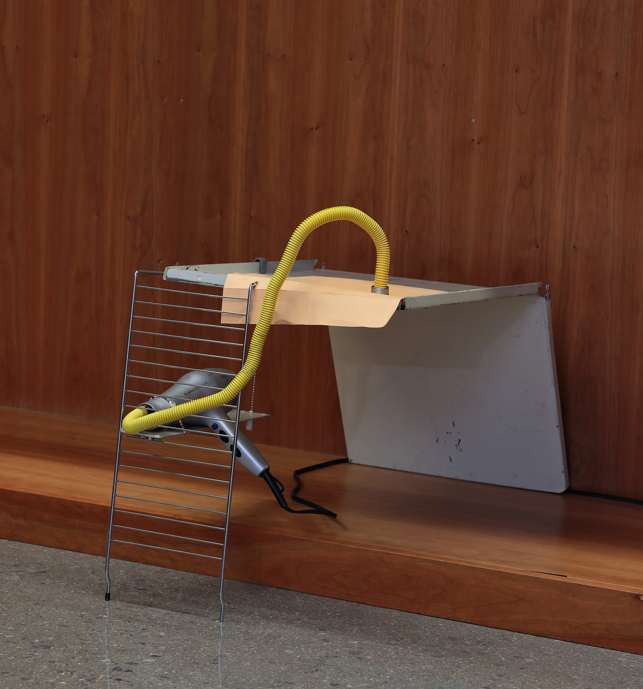 I am interested in the relationships that emerge between groupings of objects, and how objects can complement, challenge, and extend one another when freed from their prescribed uses. Here, I treat found objects, altered objects, purchased objects, sound, heat, light, and the basement architecture as materials that exist on equal footing. In recasting the basement as a ground for sculptures and treating the sculptures as dynamic and expansive entities, I aim to interrogate hierarchies of value by exploring interrelation that is adaptable, mutable, and interdependent.